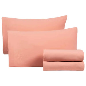 • DOBLE: 2 Fundas de almohada (0.77 x 0.50 m), 1 Sábana ajustable (1.35 x 1.90 x 0.38 m), 1 Sábana plana (2.11 x 2.57 m)