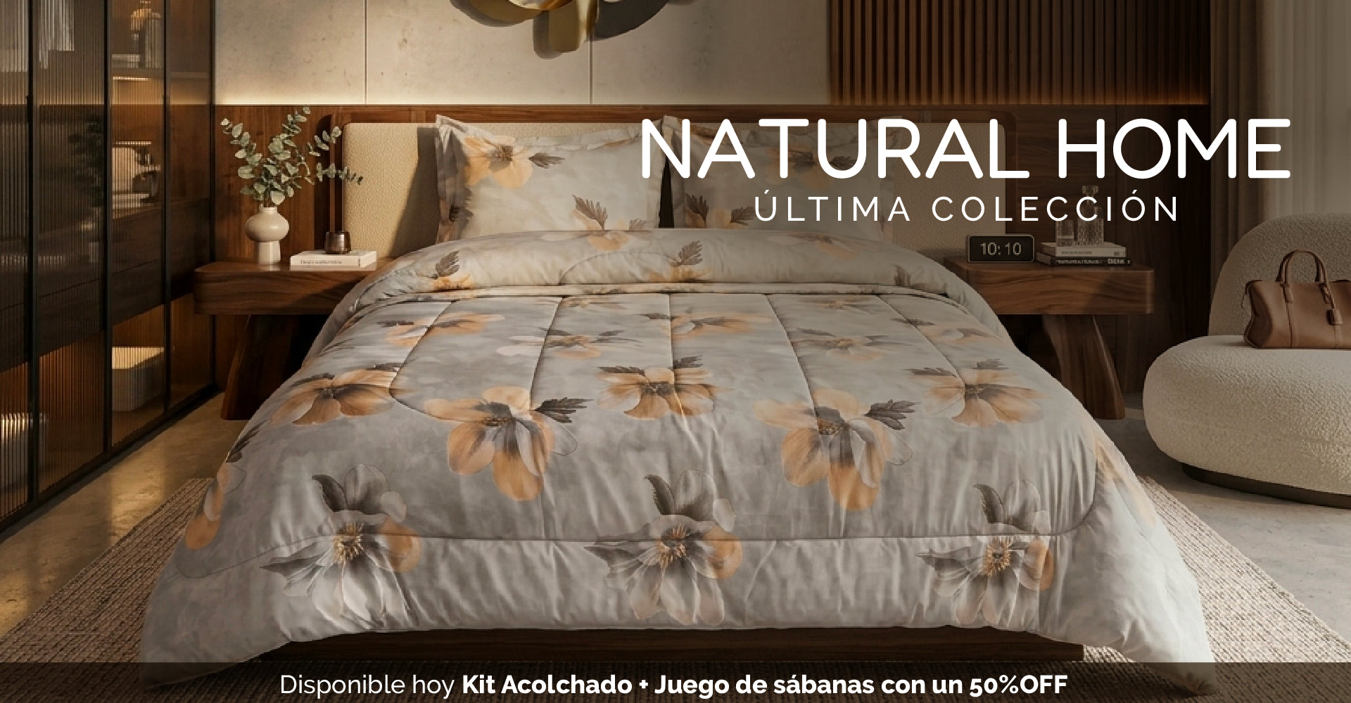 KIT ACOLCHADO + JUEGO DE SABANA PRIMAVERA GRIS